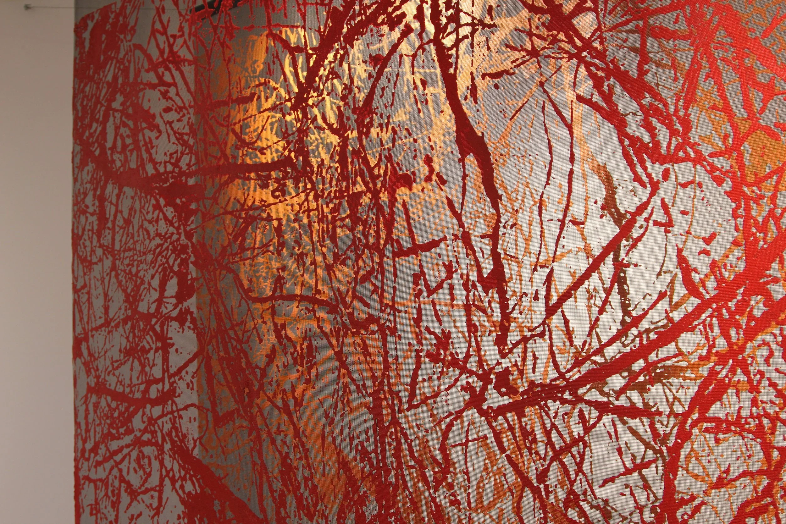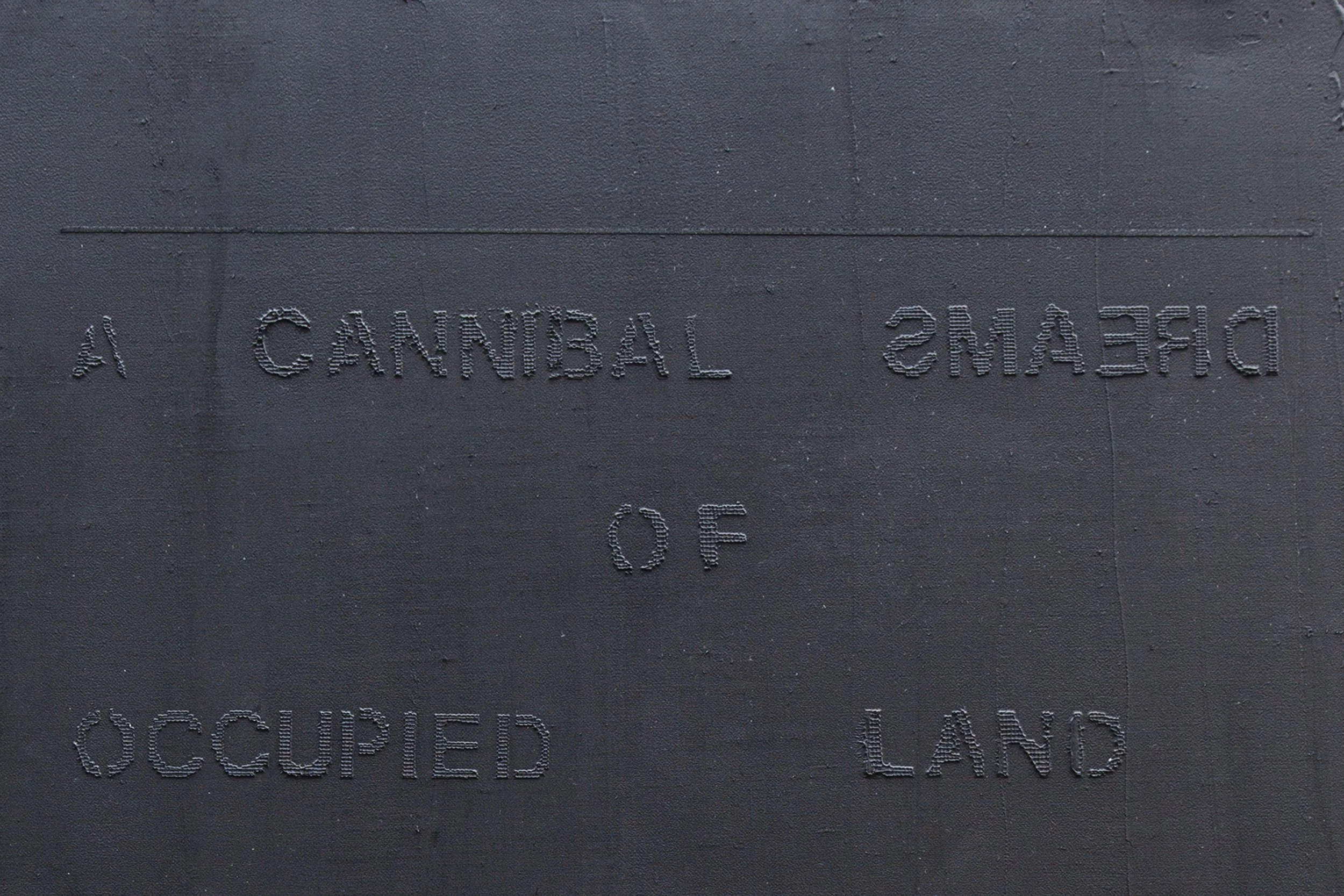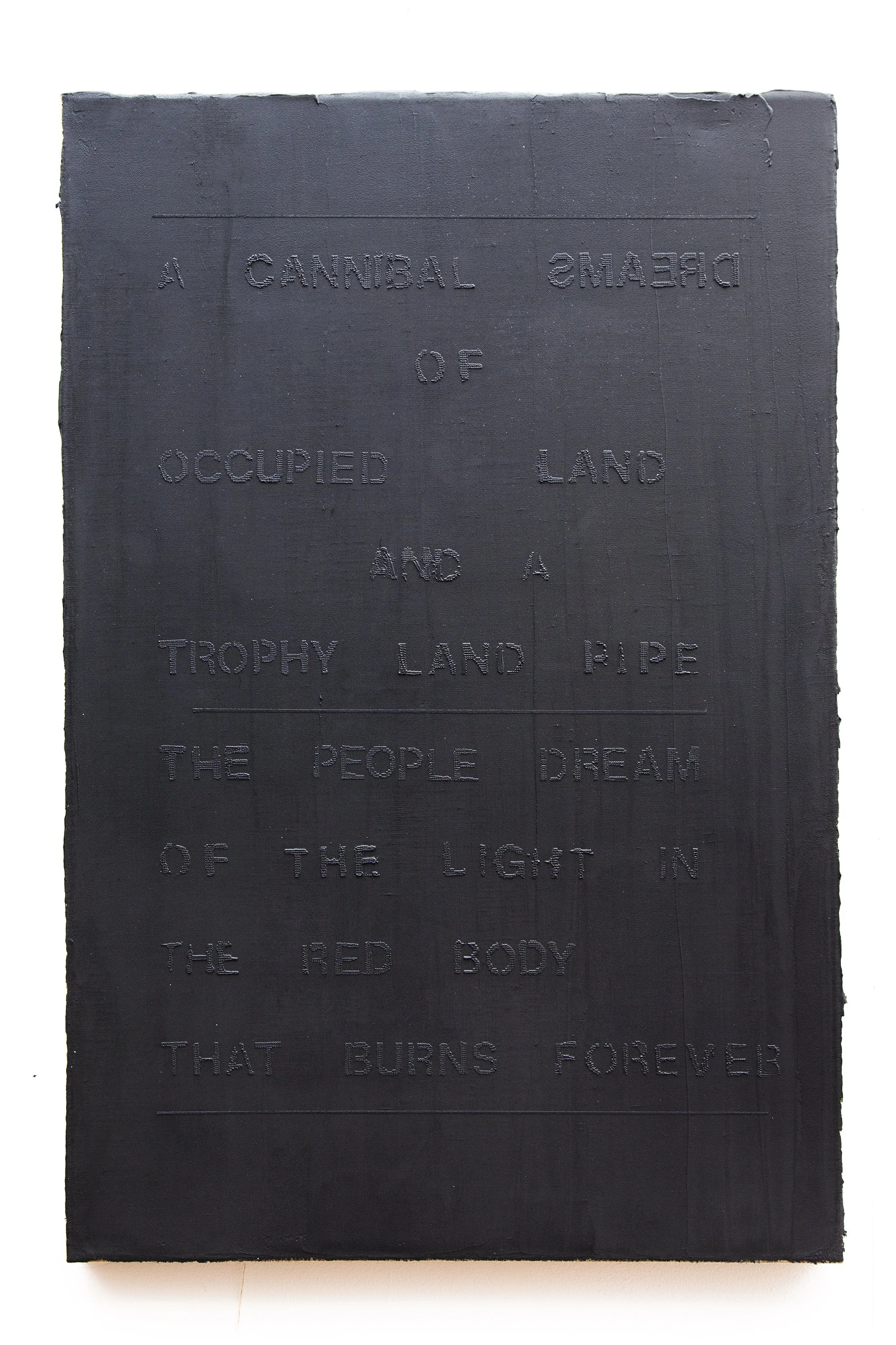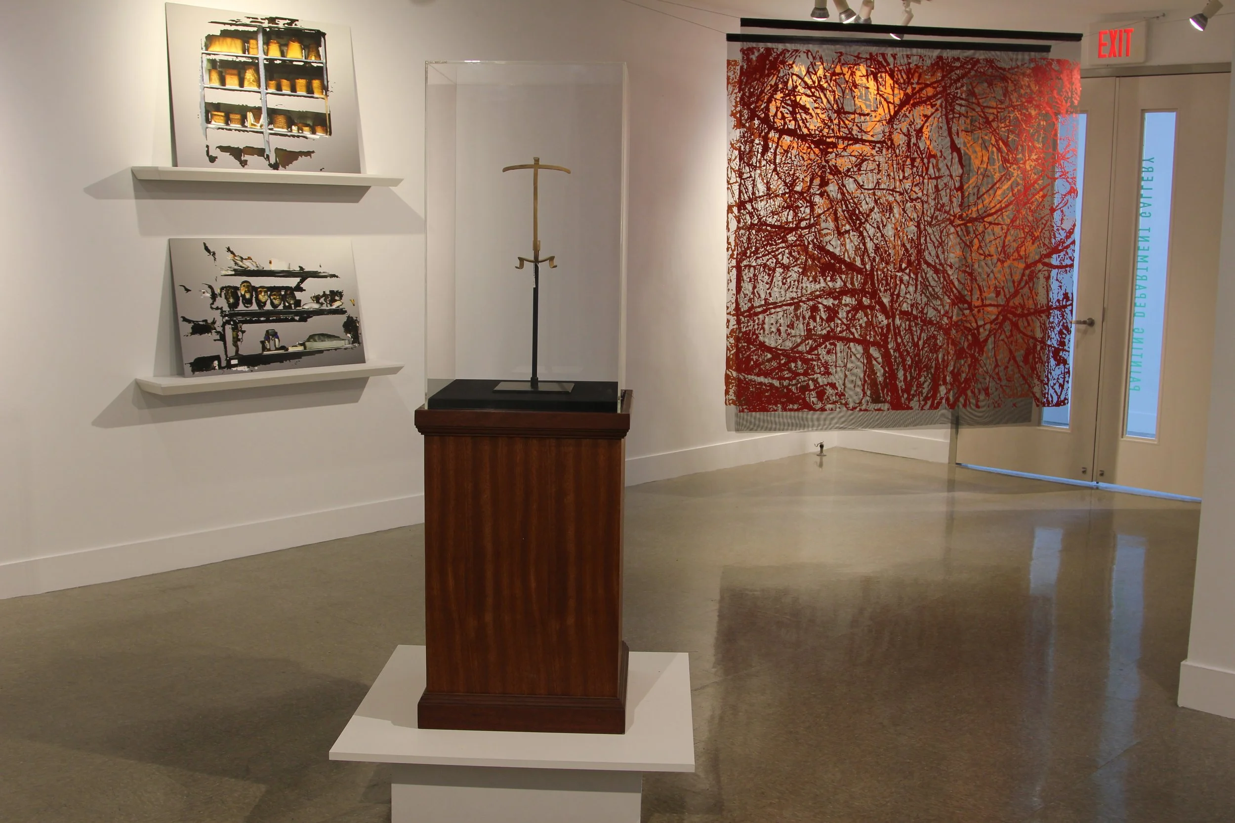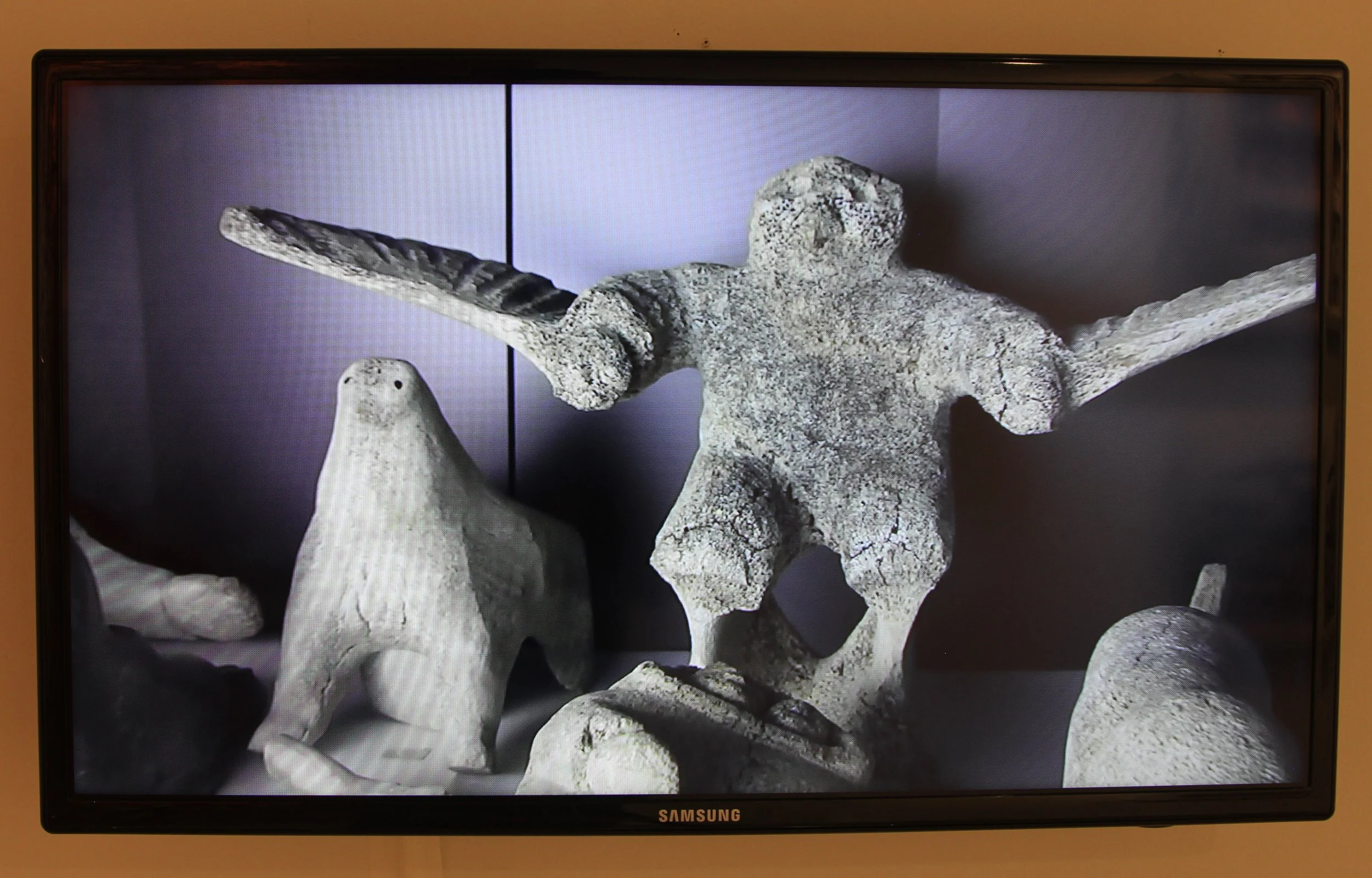 The exhibition, spanning two venues, featured North American Tribal objects at the John Hay Library and an immersive exhibition at Memorial Hall. These objects—ranging from a Kiowa cradleboard to Inuit sculptures carved from marine ivory—are stripped of their cultural contexts in institutional settings. At Memorial Hall, the artists responded to these objects with installations that included animated 3D scans, text paintings, video, digital prints, hanging screens and a single empty display case representing the institutional authority of the museum. Slick’s text paintings give voice to the Indigenous perspective and the separation of objects from their cultures, while Smick’s hanging screens reflect the invasive forces of colonialism. Together this exhibition was created in response to the decontextualization of these objects, exploring themes of colonialism, cultural erasure, and transformation.