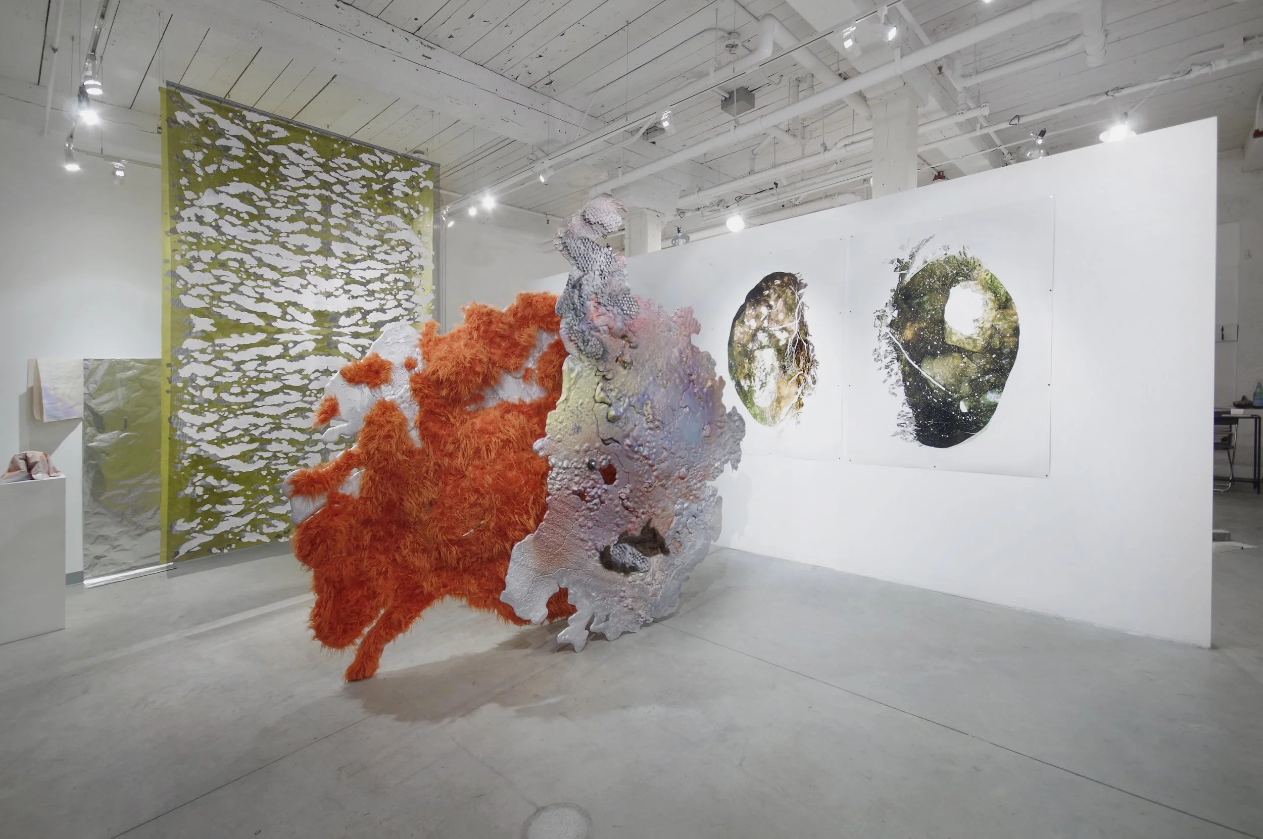 The works on display ranged in style and media but shared a common thread of exploring personal, cultural, and ecological responsibility. Fejarang's sculptures sought to transform functional materials into unrecognizable, otherworldly objects, while Frank's pieces reflected the weight of historical and ecological guilt. Giordano’s works were a mix of unsettling, provocative forms that blended humor, horror, and sci-fi. Goodell’s art engaged with themes of perception and consciousness, while Harle’s sculptures balanced monumentality and fragility, blending painting and sculpture. Mahoney’s eclectic figures, resembling skeletal or mutated beings, raised questions about societal decay and ecological collapse. Smick’s paintings challenged the boundaries of decorative art, merging democratic and expressive approaches.